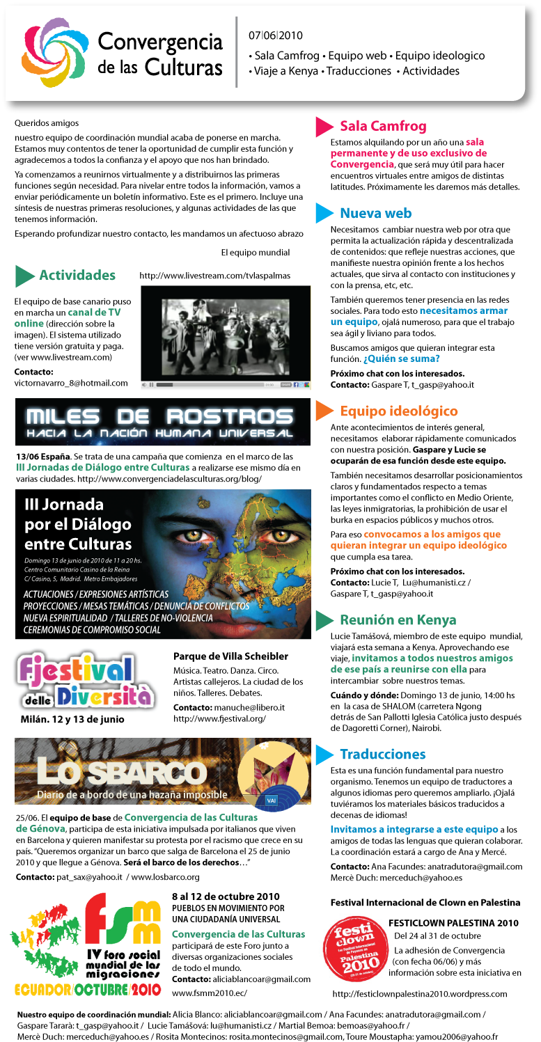 Newsletter Convergence Of CulturesNewsletter - Boletín - Bulletin - Boletim Newsletter September Spanish English Newsletter September Newsletter September (Franc.) Boletín Marzo (Español) Boletín Marzo (Español) Imagen English Newsletter March Powered by Phoca Download